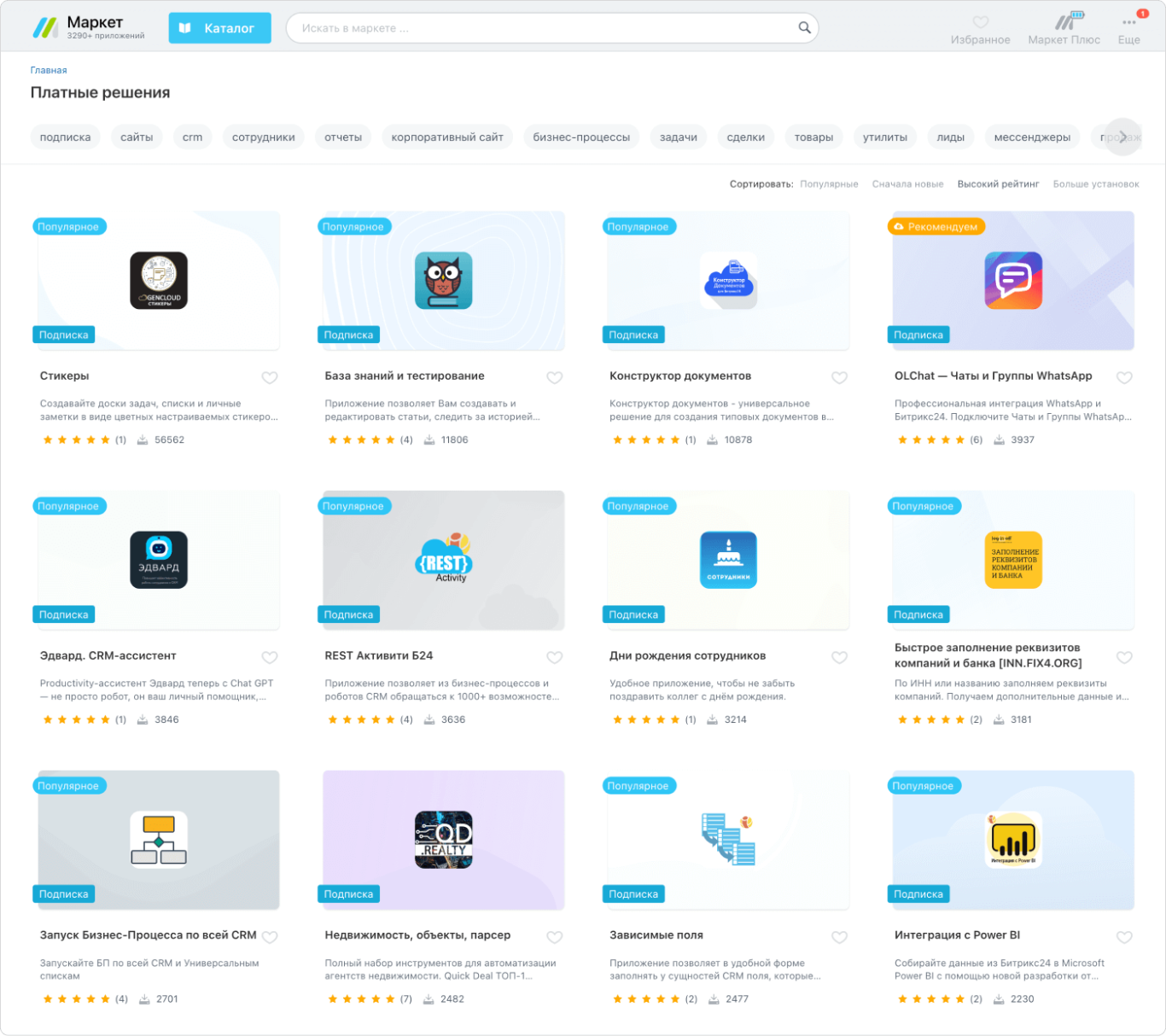 Безгранично расширяйте функционал вашего Битрикс24! Подпишите на Битрикс24 Маркетплейс и получите доступ к неограниченному количеству приложений и бизнес-сценариев из огромного каталога, где представлено более 4 200 решений.