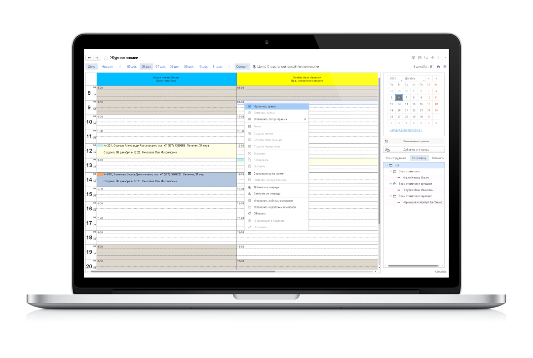Быстрая запись на прием: адаптивный календарь работы врачей и кабинетов