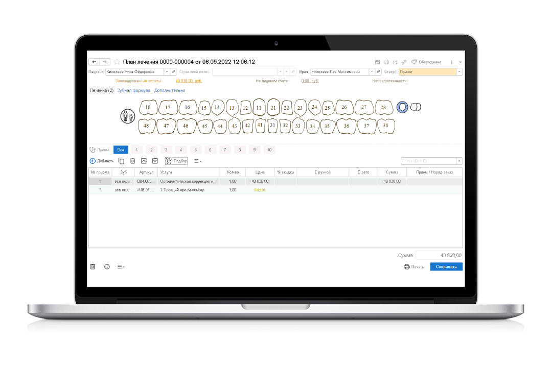 • Контроль оплаты процедур по плану лечения в несколько этапов