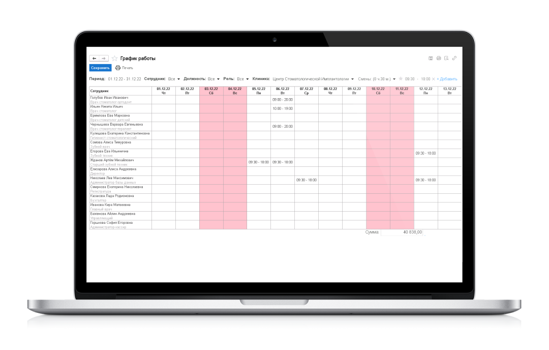 Управление персоналом клиники: планирование графика работы, отчеты по сотрудникам, расчет зарплаты