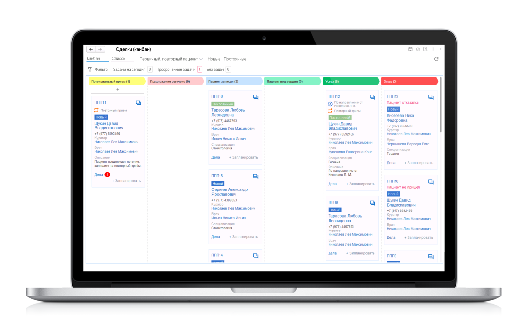 • Отчеты по пациентам: продажи, источники привлечения, повторные визиты и др.