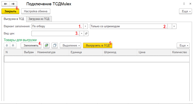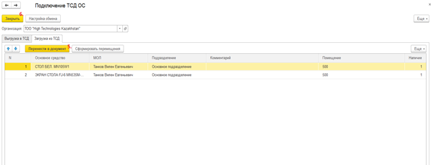 Выгрузка ОС в ТСД