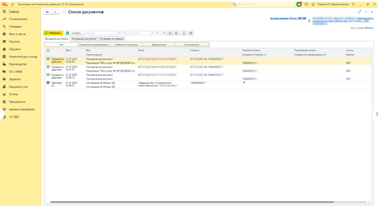 1С:ЭДО — это сервис для обмена юридически значимыми электронными документами (договорами, актами, счетами, заказами, актами сверки и др.) напрямую из вашей программы «1С:Бухгалтерия для Казахстана».