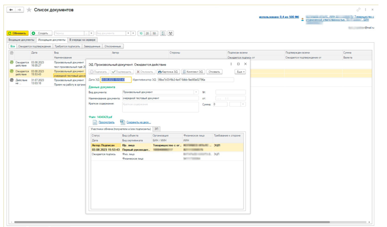 Все документы, подписанные через 1С:ЭДО, имеют юридическую силу, равную бумажным аналогам.