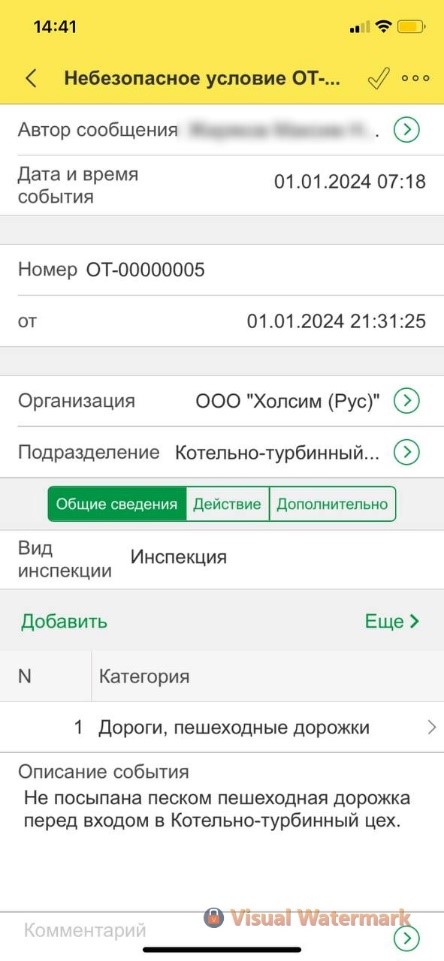 Регистрация событий Основным узким местом проекта стал блок регистрации событий, поскольку типовой функционал не в полной мере предоставлял возможности для любого сотрудника сообщить о небезопасном событии или происшествии во время рабочего процесса.