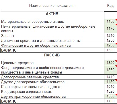 Из этого видно, что в упрощенной форме баланса в отличие от полной версии, где целевые средства имеют для НКО код строки 1300, в упрощенной форме целевые средства с другим кодом, а именно 1350. При этом они должны обязательно учитываться в формуле контрольных соотношений вместо установленного кода строки 1300.