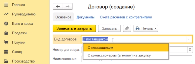 В этом договоре выбираем именно этот тип цены, который мы только что создали и для которого мы установили цену номенклатуры.