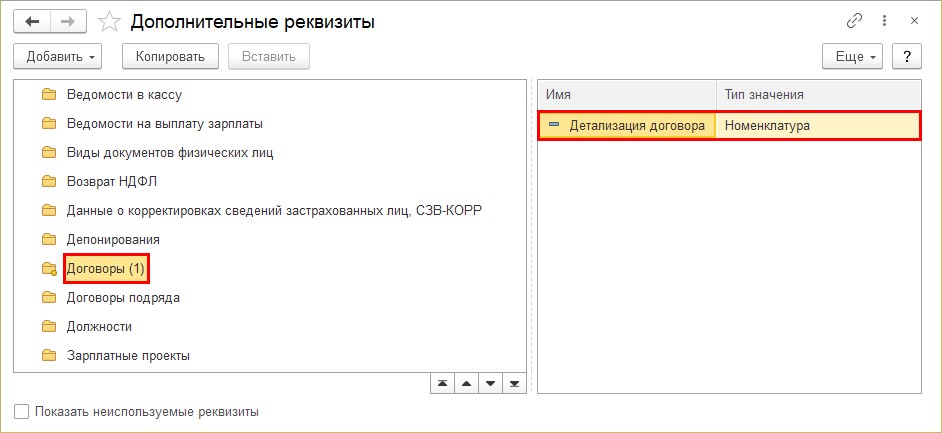 Как настроить и добавить дополнительные реквизиты 1С в справочник «Договоры»?