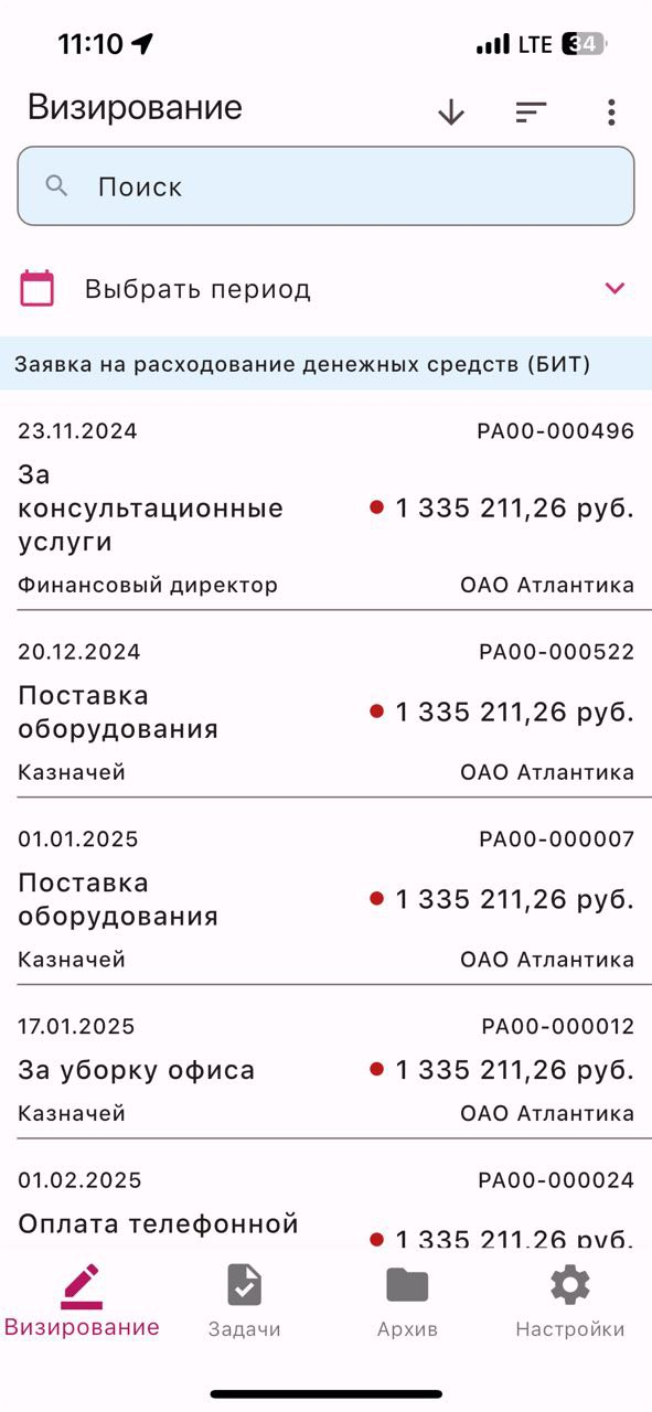 • Автоматическое формирование платежных документов на основании утвержденных заявок.