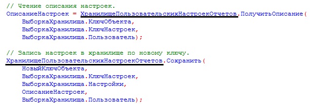 - код для хранилища пользовательский настроек отчетов: