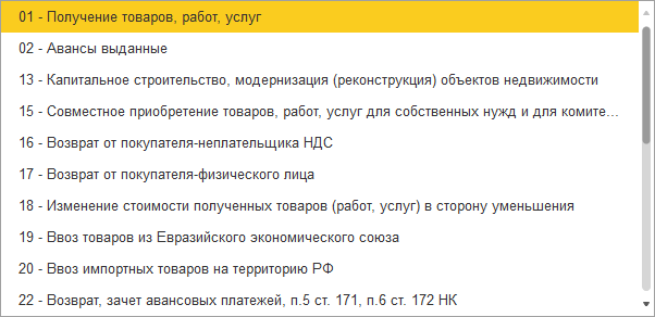 Перечень ценностей будет заполняться автоматически из соответствующего начального документа, где в графе «Вид ценности» отмечается не детализированный вид материальных ценностей. Этого действия вполне хватает для фиксации в книгах покупки.