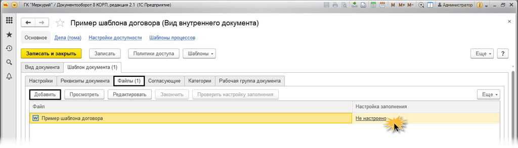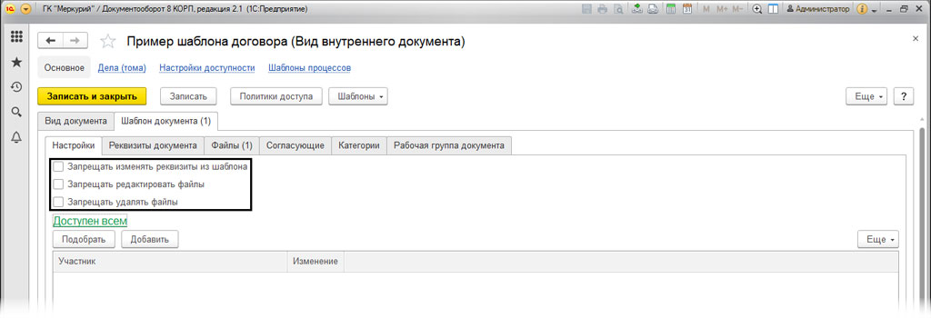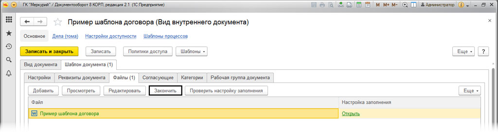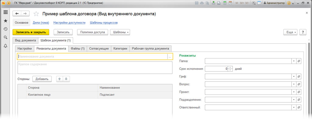 Называем его, например, "Пример шаблона договора" и в настройках ставим галочки на "Использовать срок исполнения ", после на "Является договором". Если необходимо включить документ в нужную группу, то вам потребуется задать индекс нумератора. Так называемый суффикс либо префикс документа.