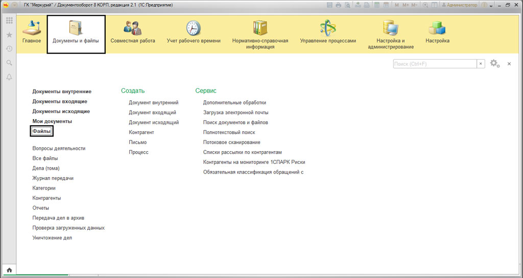 Для этого нужно перейти к созданию шаблона. Открываем пустой файл MS Word, после чего закрепляем ее в настройках. Переходим к разделу "Документы и файлы"-"Файлы".
